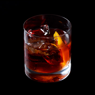 Se vierten los ingredientes en un vaso mezclador con hielo y se agitan con la cuchara de bar. Se cuelan en un vaso ...