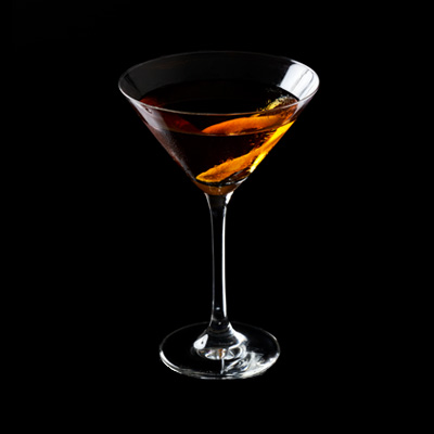 Se vierten los ingredientes en un vaso mezclador con hielo y se agitan con la cuchara de bar. Se cuelan en una copa...