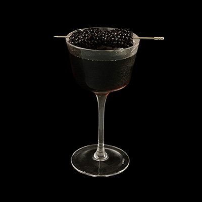 Agrega los ingredientes en el shaker junto con hielo. Machaca las zarzamoras en el vaso mezclador pequeño. Agita l...