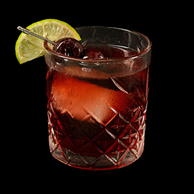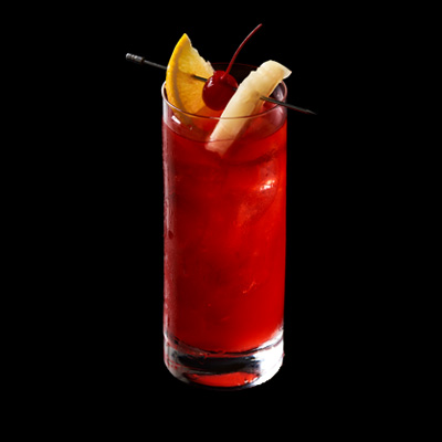 Se vierten los ingredientes en el shaker con hielo y se agitan. Se cuelan a un vaso alto lleno de hielo. Se adorna...