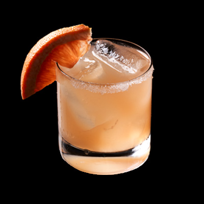 Se vierten los ingredientes en el shaker con hielo y se agitan. Se cuelan a un vaso corto escarchado con sal y ll...