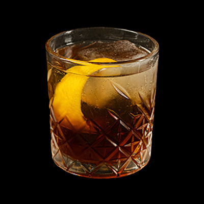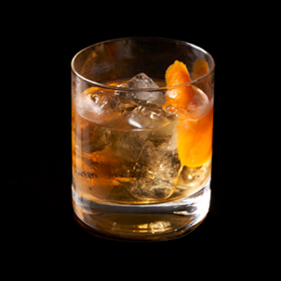 Se vierten los ingredientes en un shaker con hielo. Se cuelan en un vaso corto con hielo. Se adorna el coctel c...
