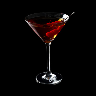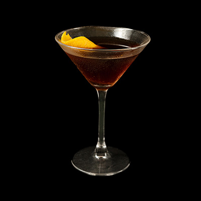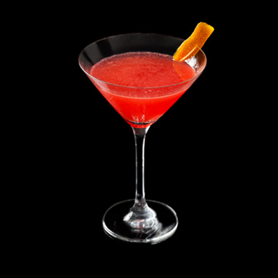 Se agitan los ingredientes en el shaker con hielo. Se cuelan en una copa de martini helada. Se adorna el coctel c...