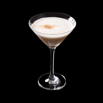 Se agitan los ingredientes en el shaker con hielo. Se cuelan en una copa de martini helada. Se espolvorea un poco...