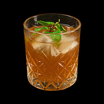Se agitan los ingredientes en un vaso mezclador con hielo y se agitan con la cuchara de bar. Se cuelan en una cop...